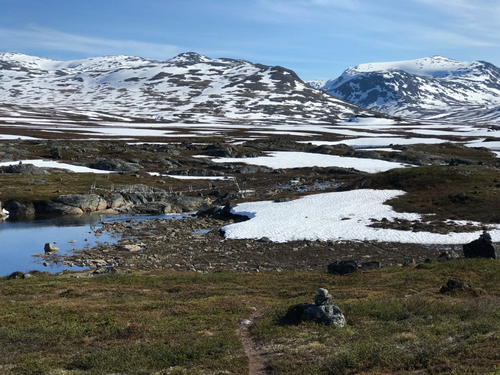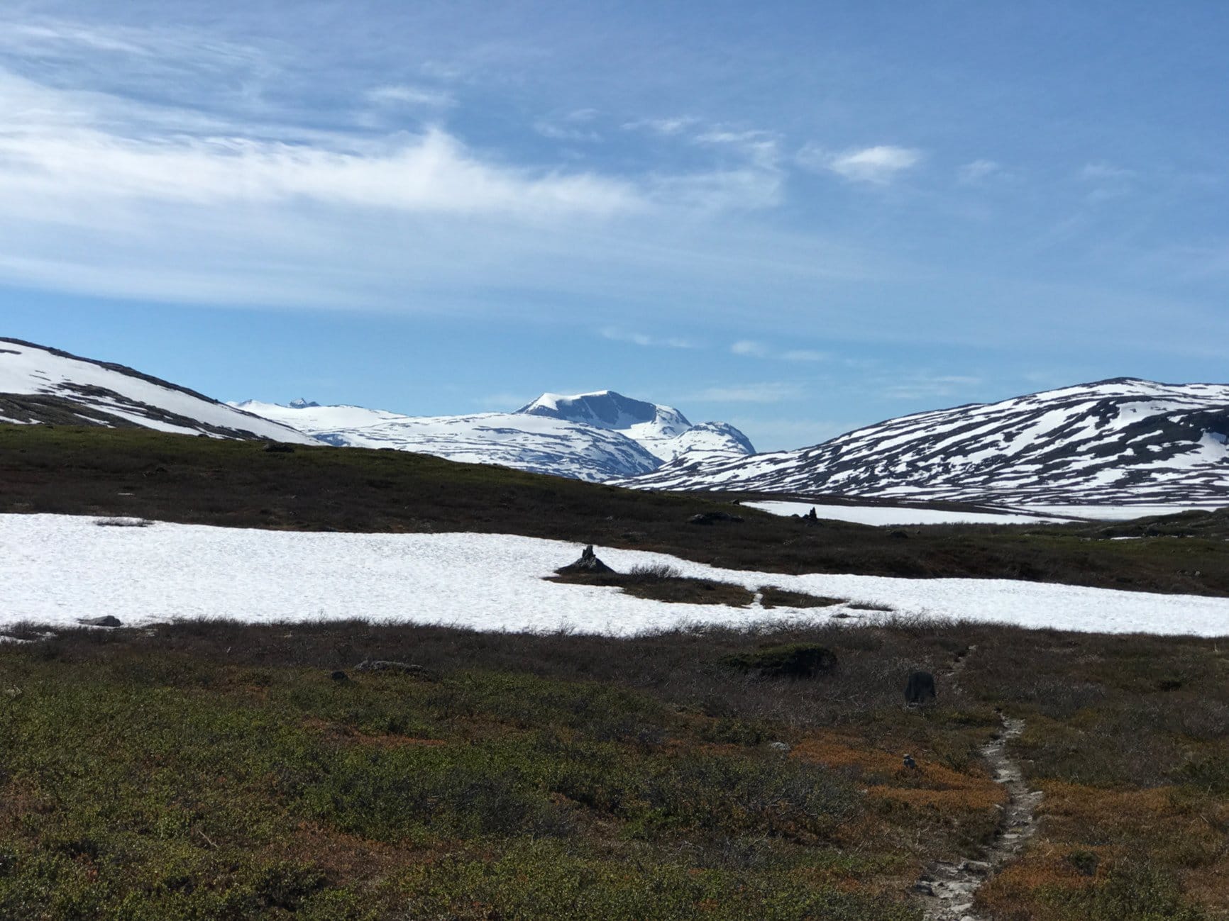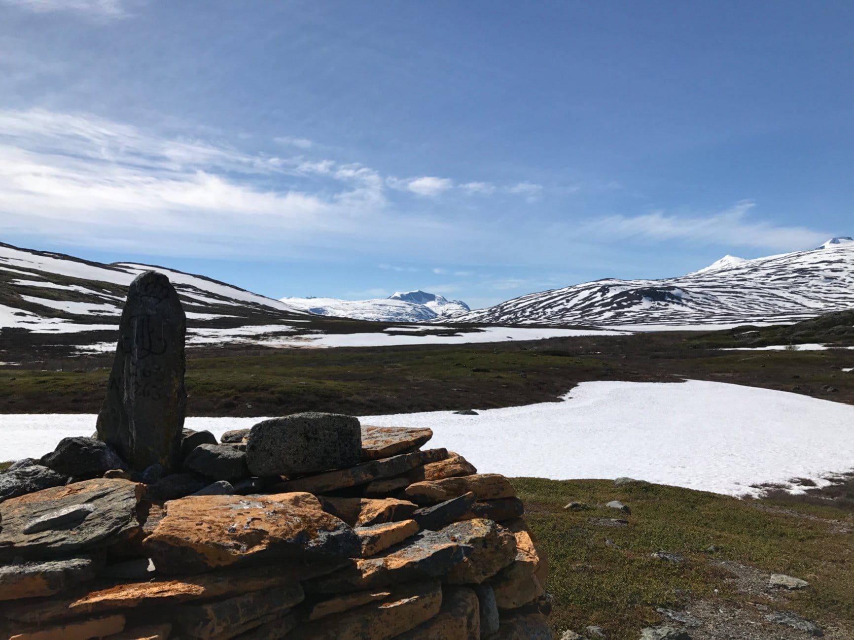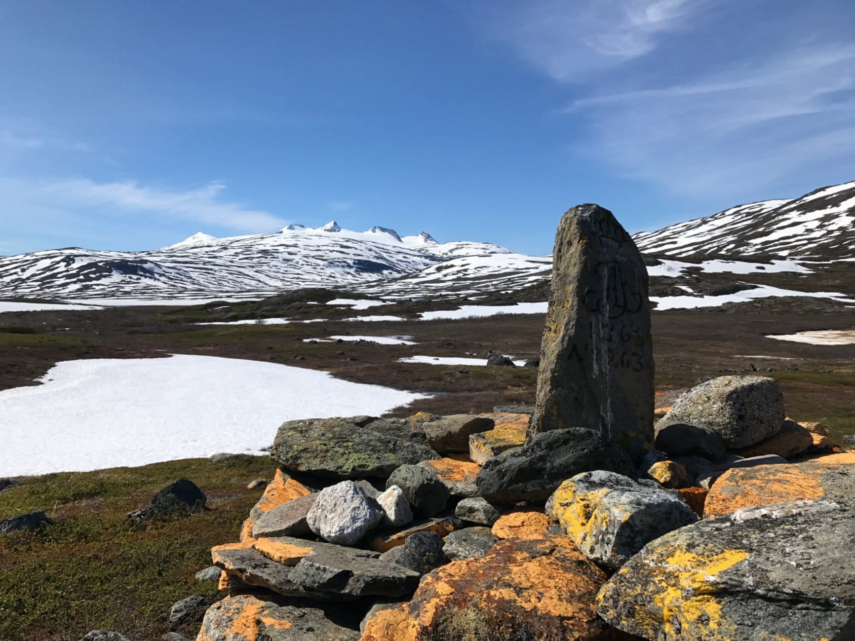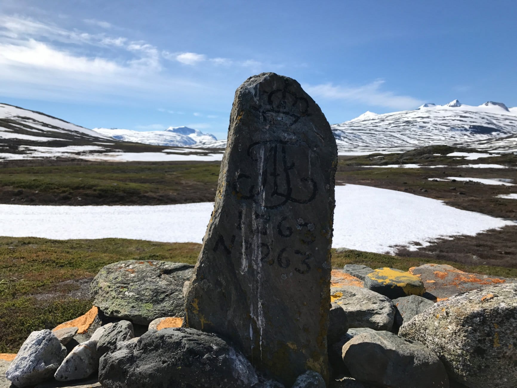 The path just keeps going; there’s no end to it. By now I’ve crossed back into Norway. The border was marked by a large yellow stone.