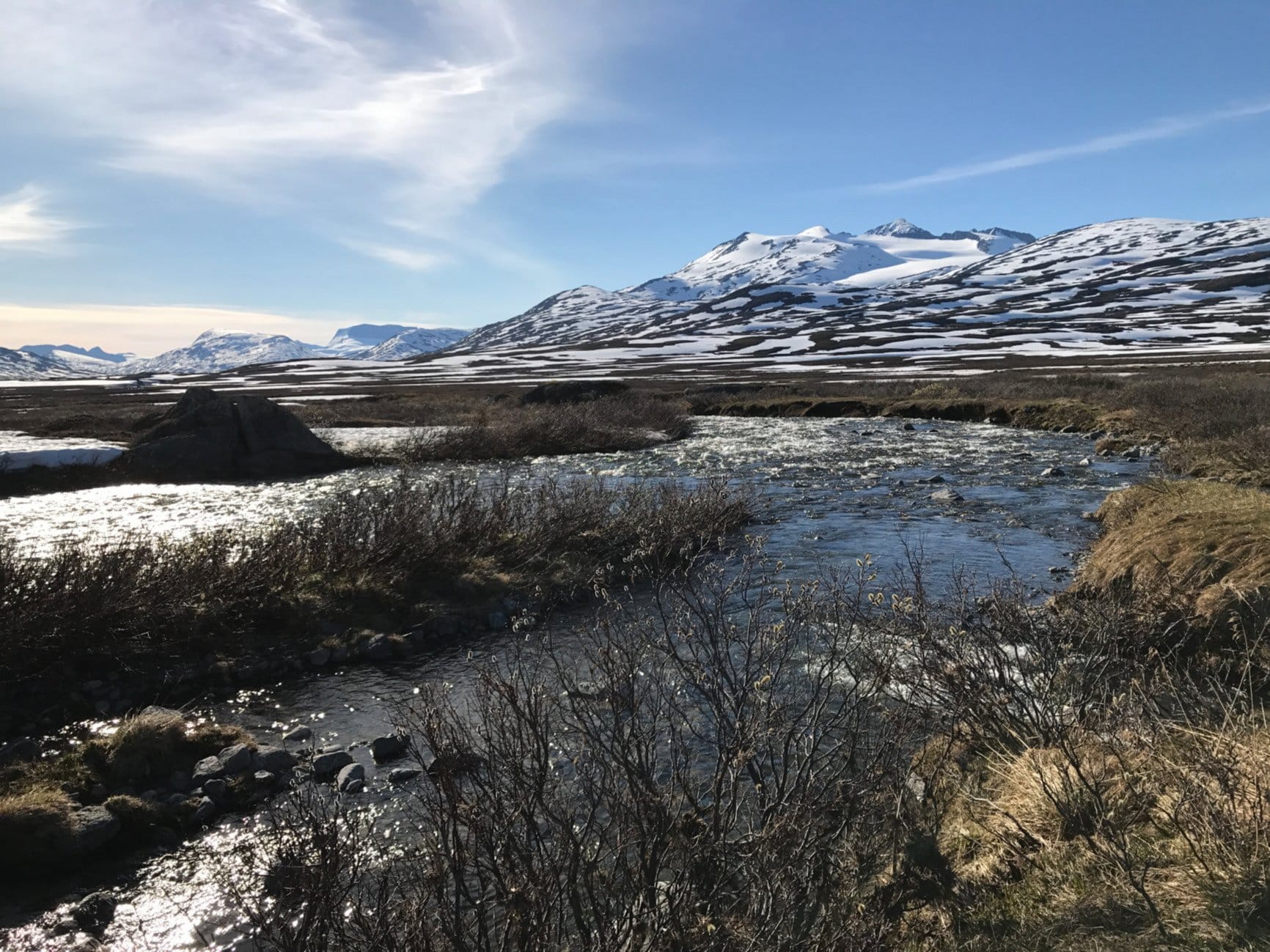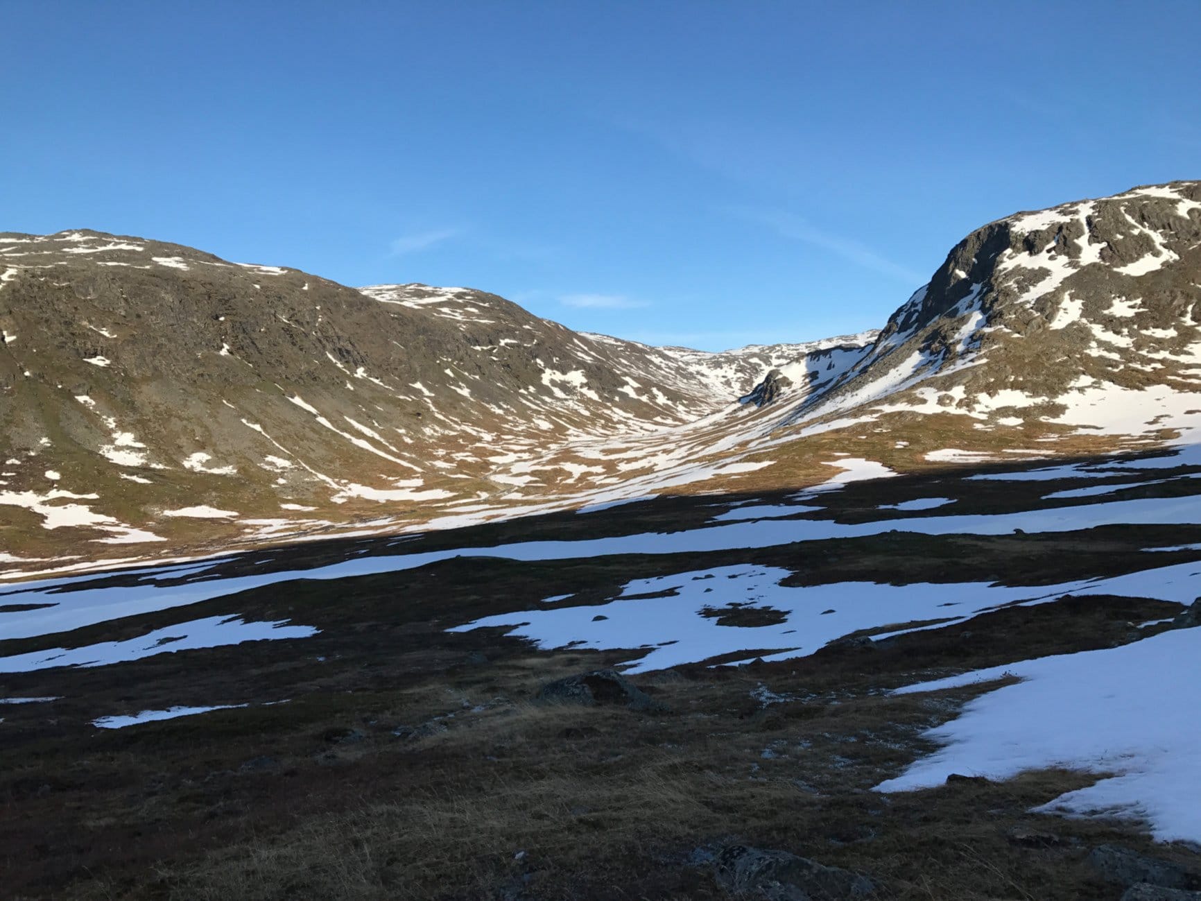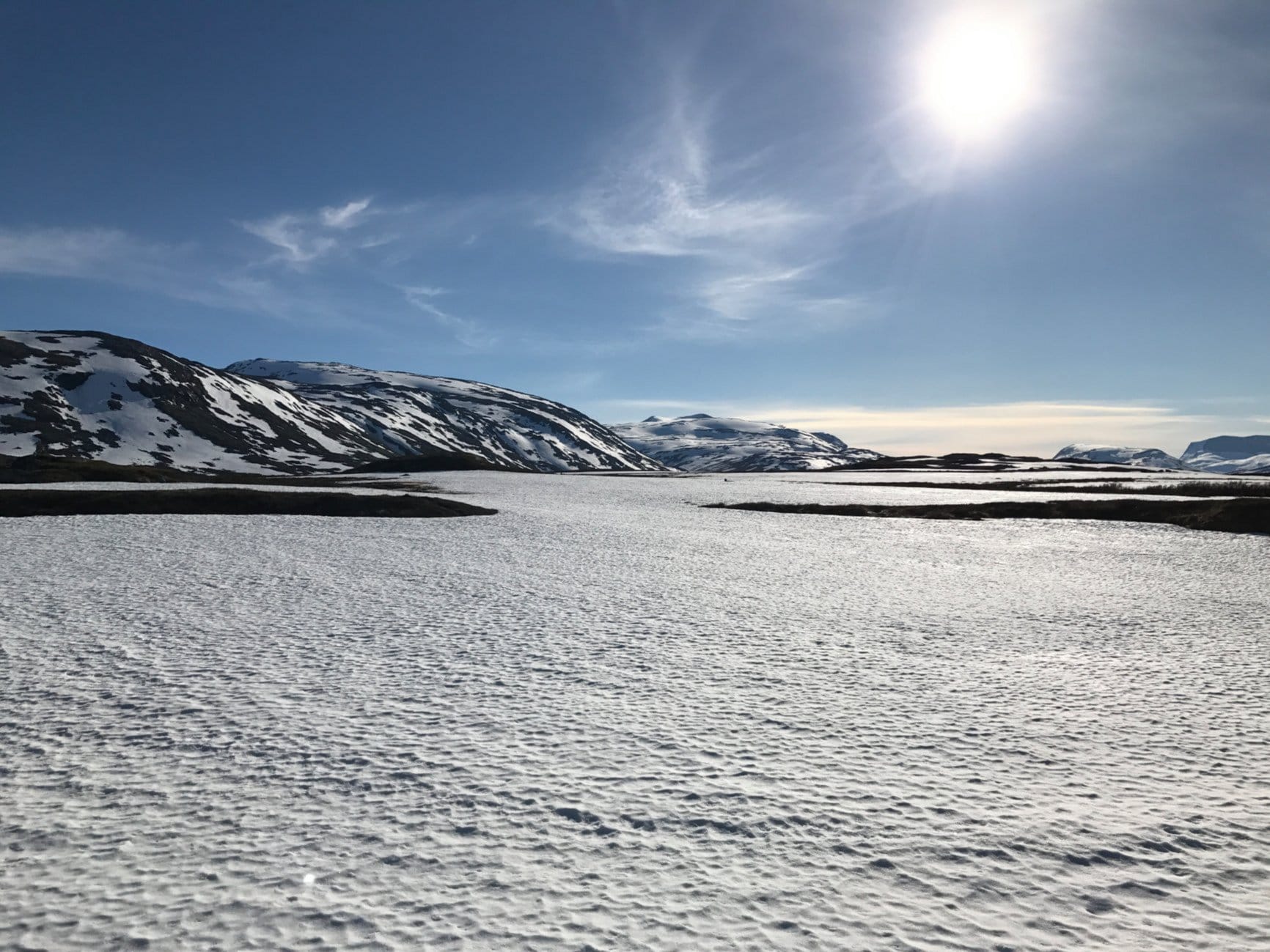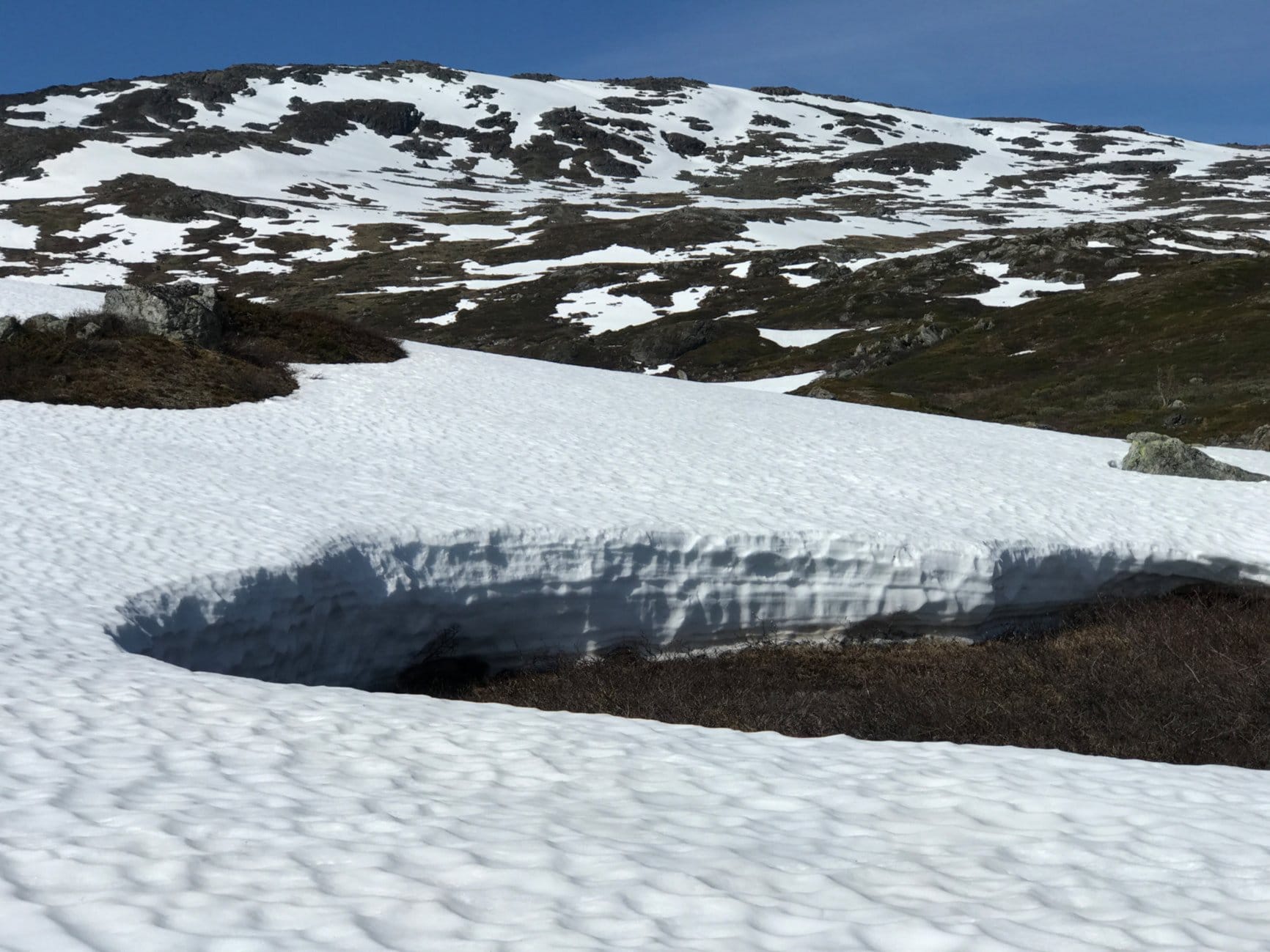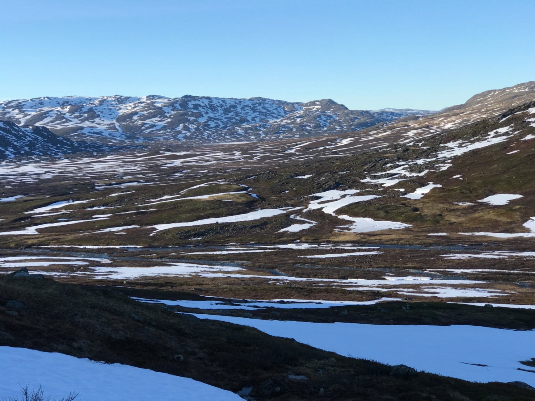 The snowfields are getting more intense. It’s quite icy, but I still sink about 20 cm. At some point the VBL liners give up and start leaking too. Cold feet set in.