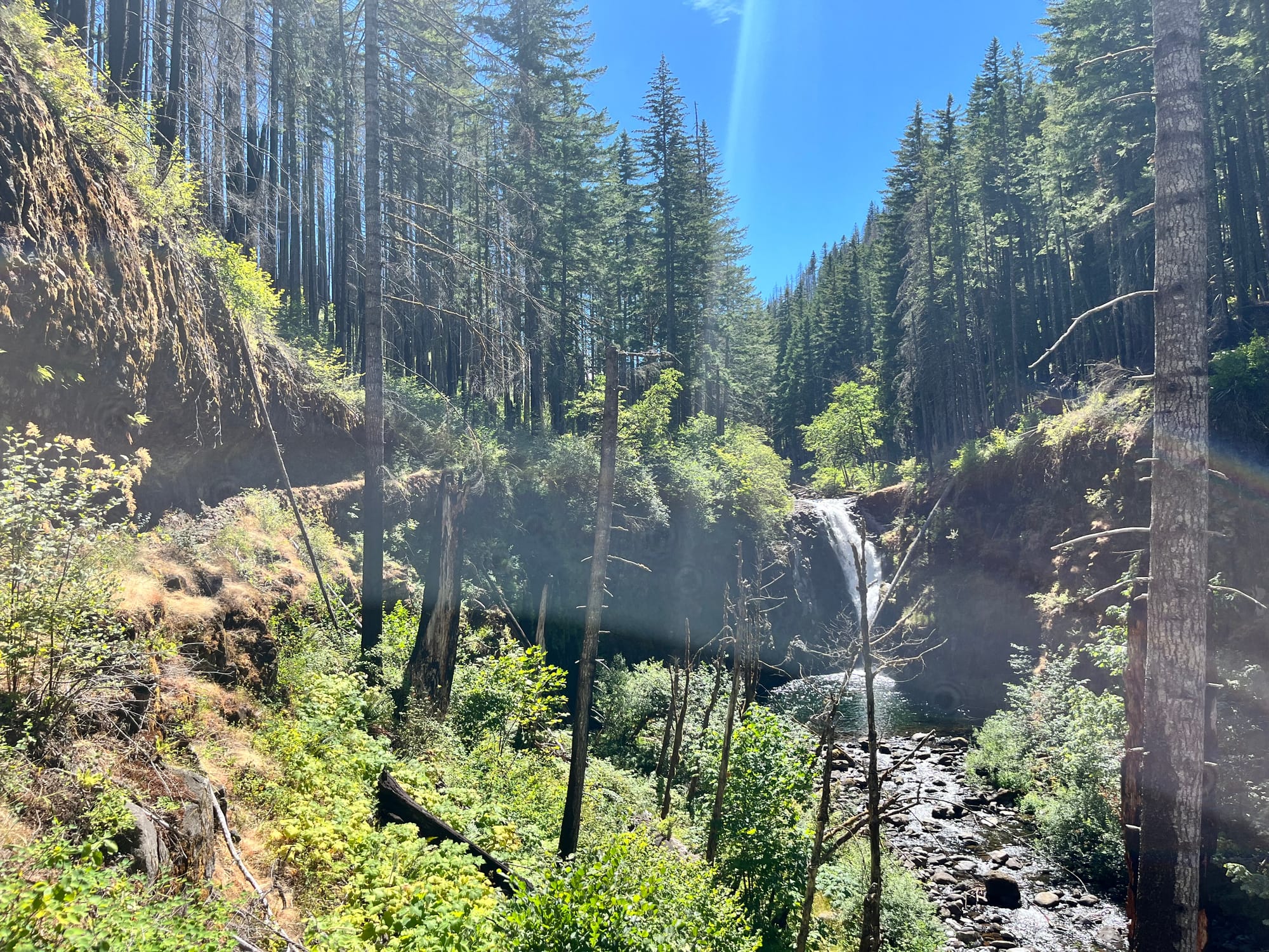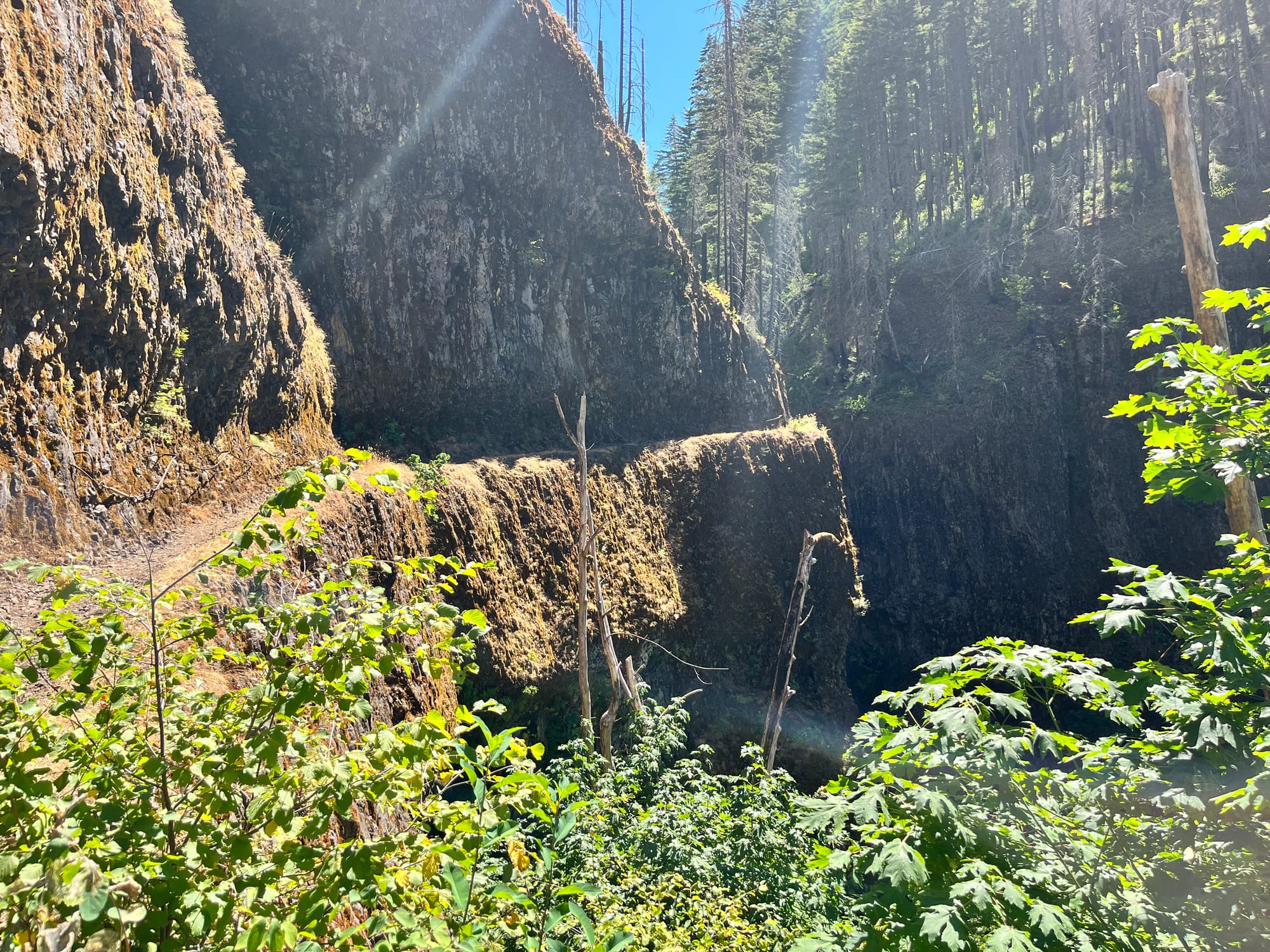 Because of a forest fire, I had to take an alternative route. It took me an hour of bushwhacking, searching for a trail. After collecting a few scratches from the blackberry bushes, I decided to turn back and look on the other side of the highway.