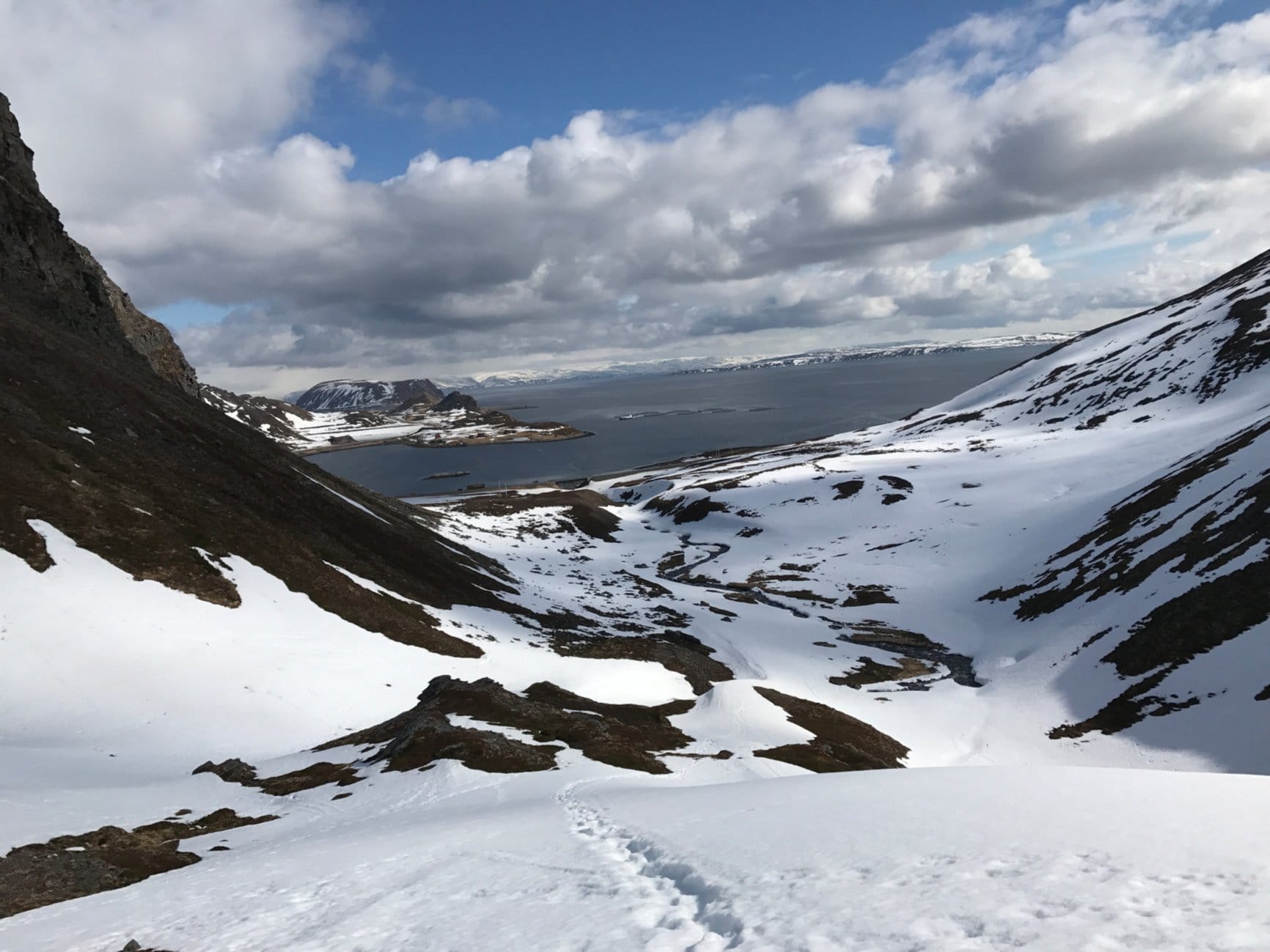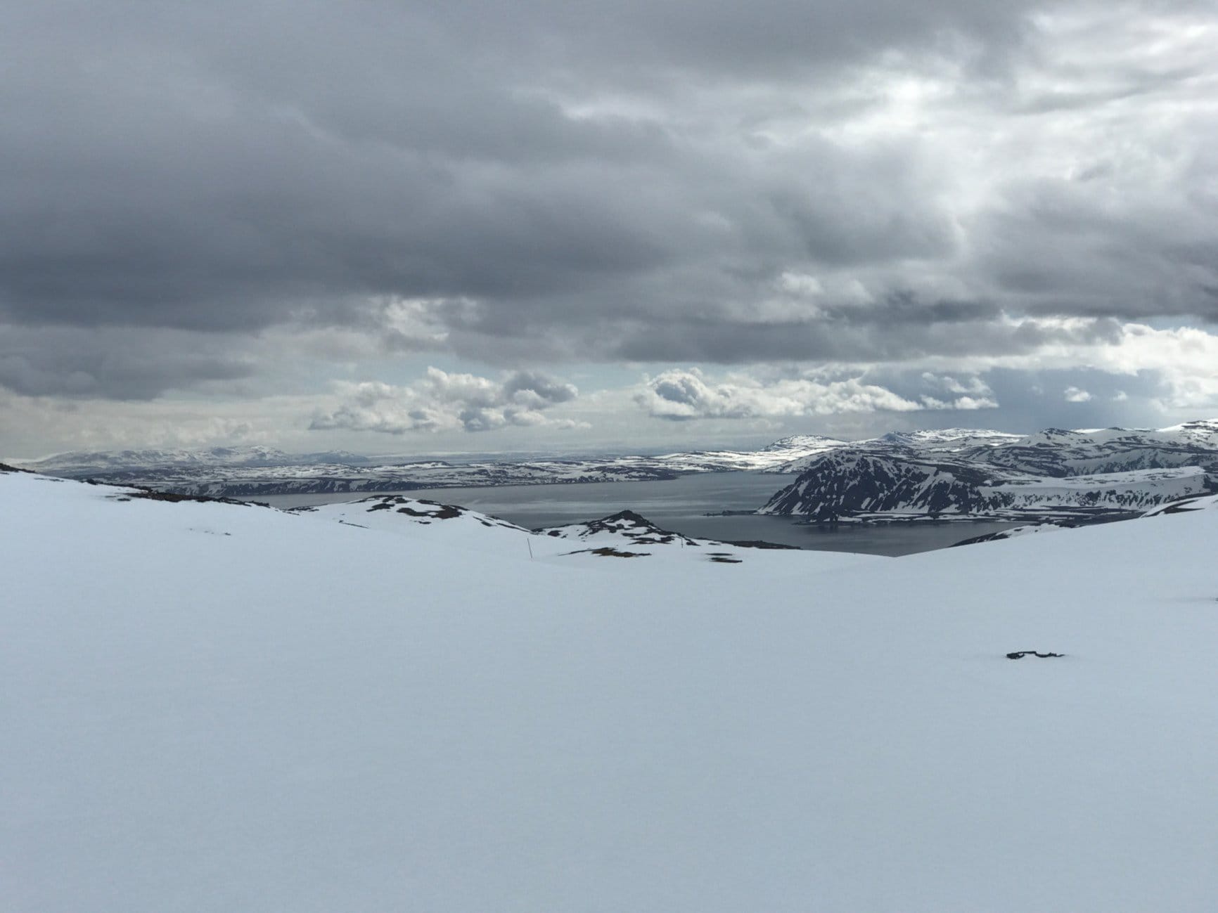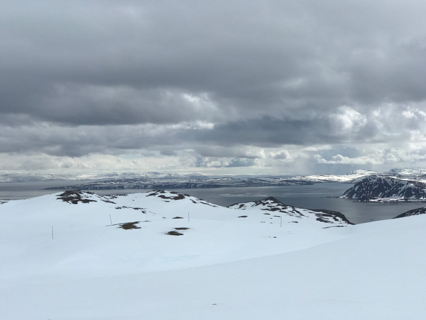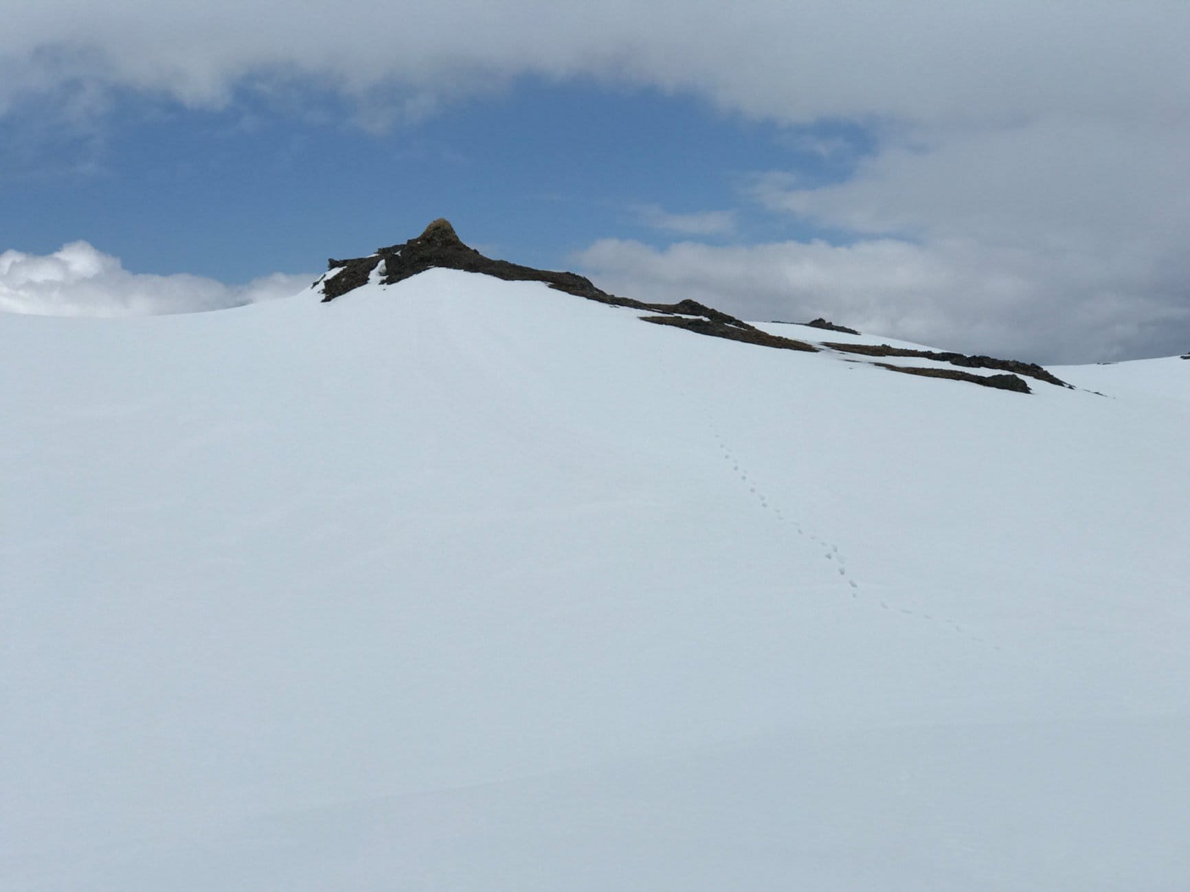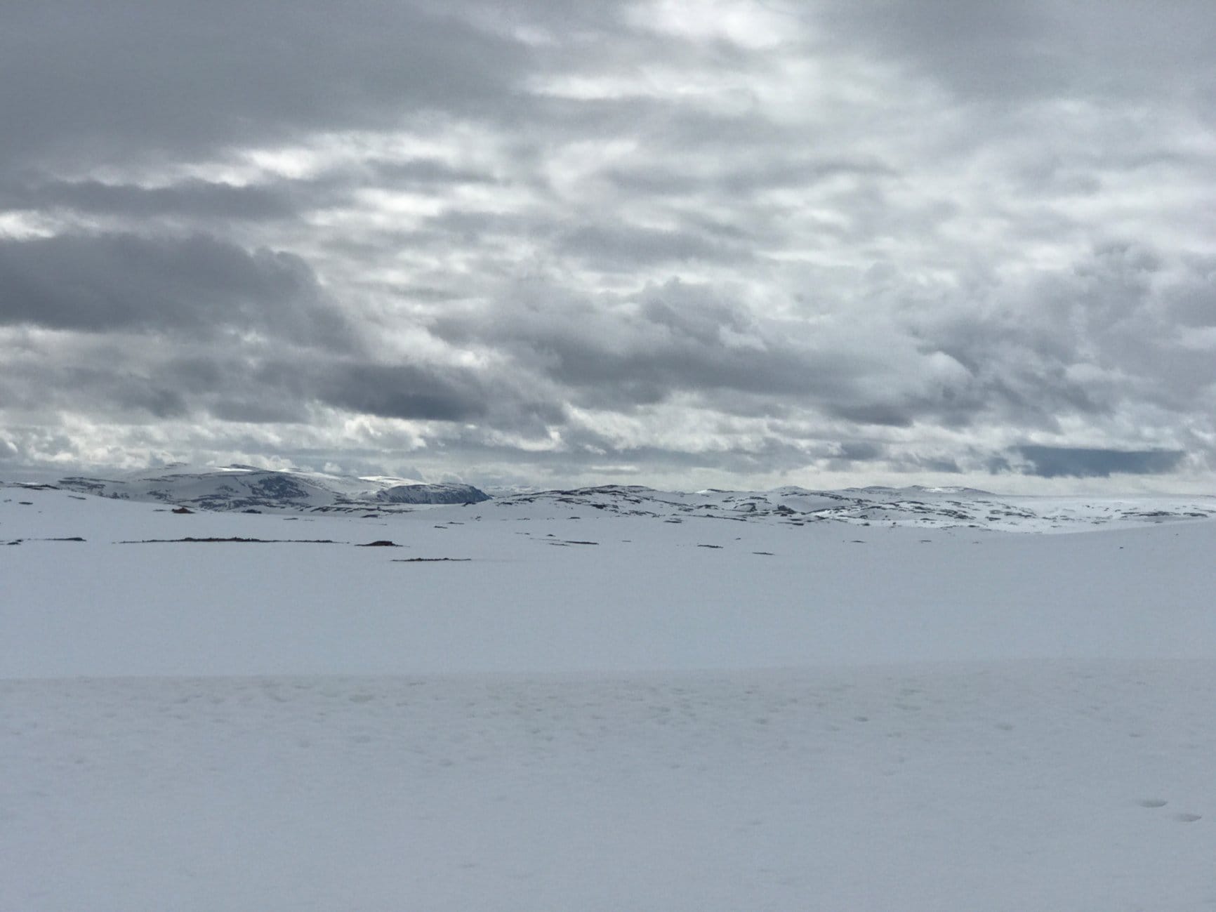 White—now it’s very white. Every now and then I take off my glasses, but then the white becomes really unpleasant. The kind of white that hurts deep inside your eyes. Suddenly I spot footprints from someone else. Thank you, Karen! Saves a lot of GPS checking.